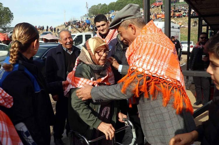 Deve güreşine Haydarlı Mahallesi'nden olan ve Cumhuriyet ile yaşıt olan Fatma Çiftçi, Belediye Başkanı Nedim Kaplan'ın onur konuğu olarak katılıp, ilk kez arenada deve güreşi izlemenin keyfini yaşadı.