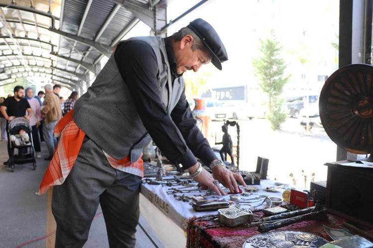 Kayseri'nin Talas ilçesi Mevlana Mahallesi'ndeki semt pazarında, 'Antika ve Koleksiyon Günleri' etkinleri kapsamında antika fuarı açıldı.