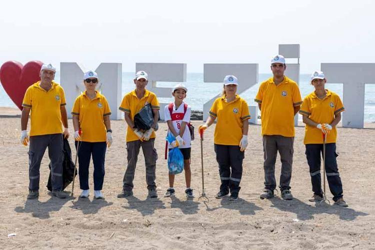 Artan takipçi sayısıyla birlikte daha fazla çöp toplamayı hedefleyen Aras, kendisine destek veren Mezitli Belediyesi Temizlik İşleri Müdürlüğü ekipleriyle birlikte Taşkıran Sahili'nde temizlik yaptı.