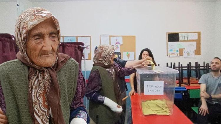 Gaziantep’in İslahiye ilçesinde yaşayan 113 yaşındaki Fatma Tıraş, bir kolundaki alçıyla sandığa giderek Cumhurbaşkanı Seçimi ikinci oylaması için oyunu kullandı.