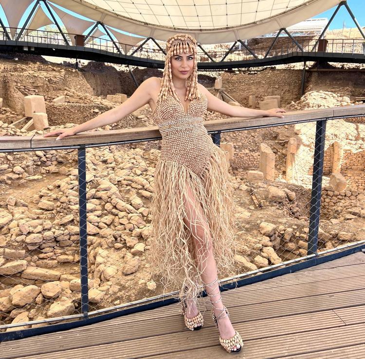 Çekimler için izin aldığını belirten modacı Perihan Demirdelen ise, Göbeklitepe'yi ilk gördüğünde çok etkilendiğini, kıyafeti de o şekilde tasarladığını ifade ederek, "Ahşap ve bambu taşlarından oluşan bu boncuklarla 8 ayrı parçayı ortaya çıkardık.