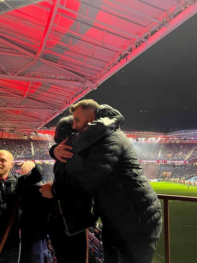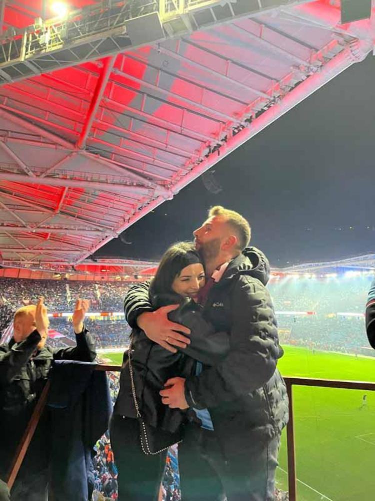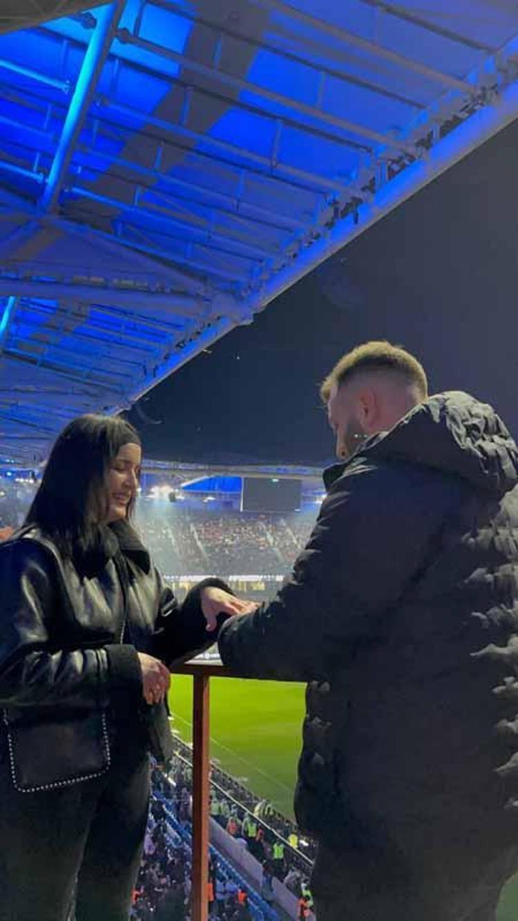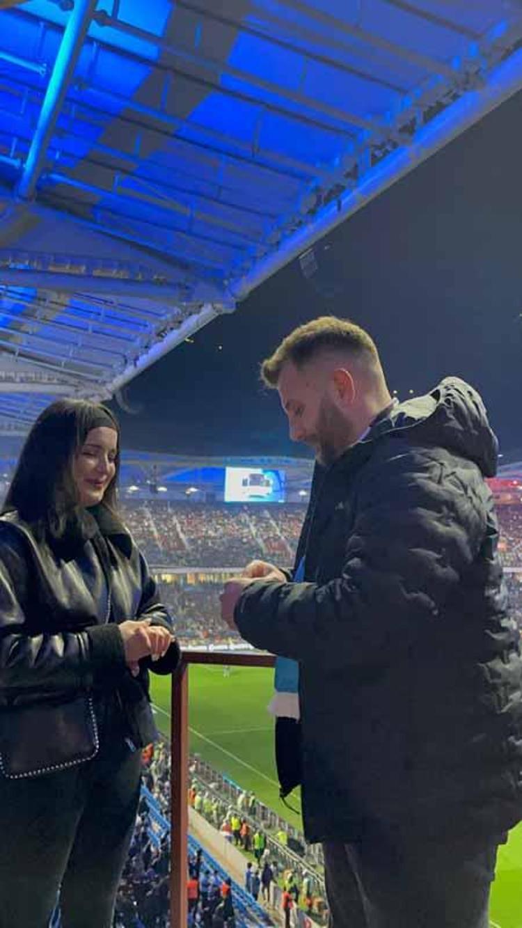 Trabzonspor ile Fenerbahçe arasında 14 Şubat Sevgililer Günü’nde oynanan karşılaşma öncesinde tribünlerde romantik anlar yaşandı. Emre Şeras, kız arkadaşı Eda Sevim’e sürpriz bir evlilik teklifinde bulundu.