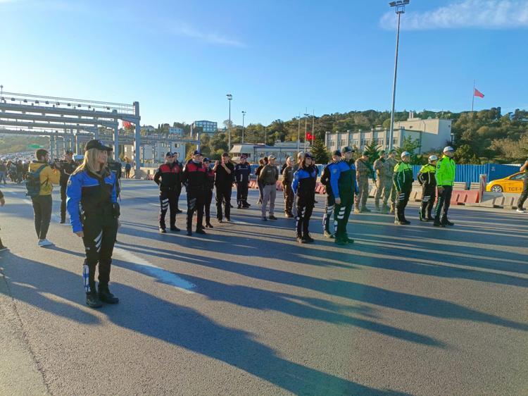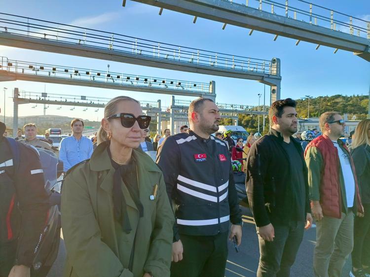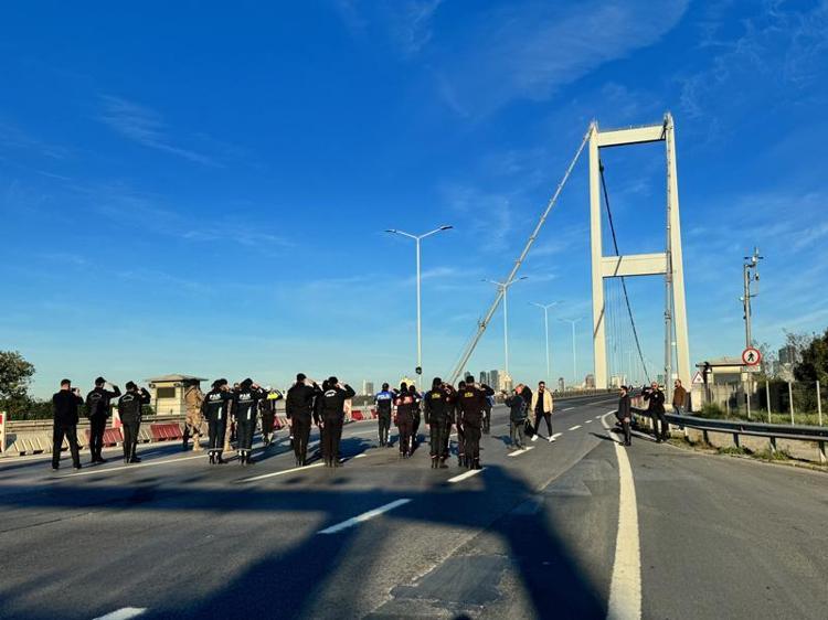 Saat 09.05'i gösterdiğinde köprü girişinde sürücüler araçlarından indi. Vatandaşlar ve polis ekipleri 15 Temmuz Şehitler Köprüsü girişinde saygı duruşunda bulundu. Saygı duruşu havadan da görüntülendi.
