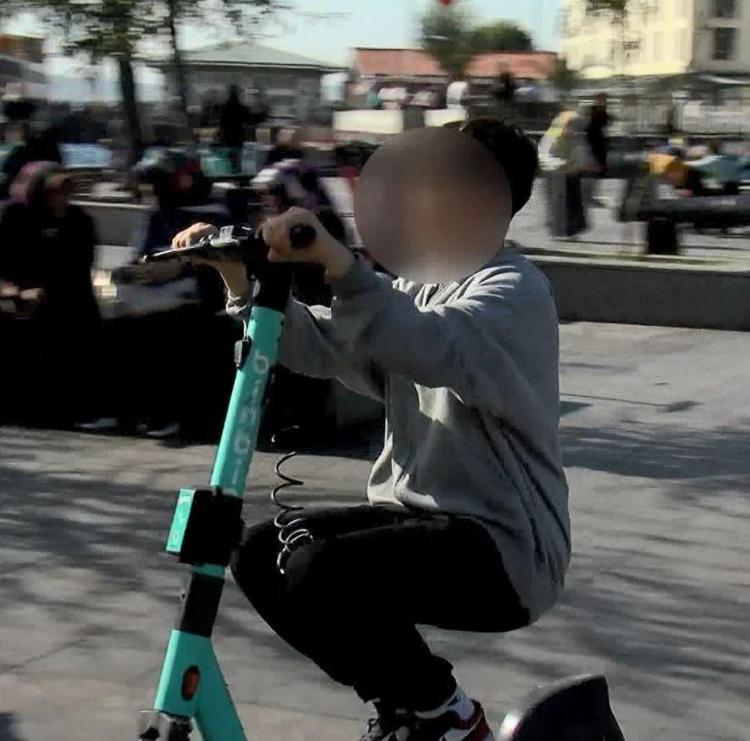 15 yaşında olduğunu söyleyen bir çocuk, "Bankadan değil, marketten ön ödemeli kart aldım. Evde kayıt yaptım. 70 TL yükleyip 3 saat sürebiliyorsunuz. 15 yaşından küçük olanlar da benim gibi, başkalarının üzerine kayıt yapıp, skuter kullanıyor" dedi.