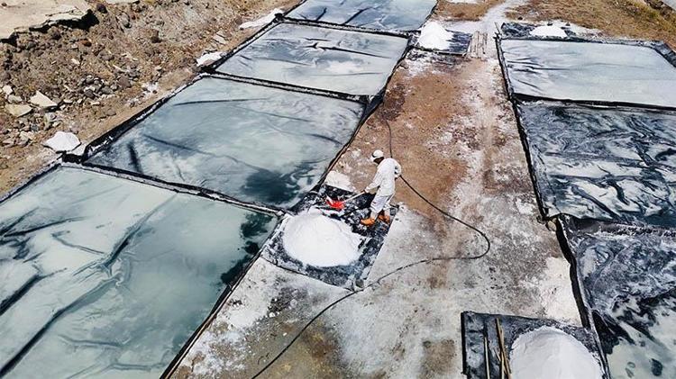 Yer altından kuyudan çıkan suyu itinalı bir şekilde büyük havuzlara alıyoruz. Burada dinleniyor, dereceleniyor. Derecelendikten sonra buradan kademeli bir şekilde havuzlara alıyoruz. Üç günde, dört günde bir burada çalışan arkadaşlarımız tarafından göllere gidiliyor. Güzel, temiz bir şekilde bunları yıkaya yıkaya çıkıyor ve gölün kenarına alıyoruz. Bunları gölün kenarına aldıktan sonra iki üç gün burada güneşte kuruduktan sonra paketliyoruz. Bir kiloluk, iki kiloluk, 5 kiloluk ve büyük çuvallar şeklinde.