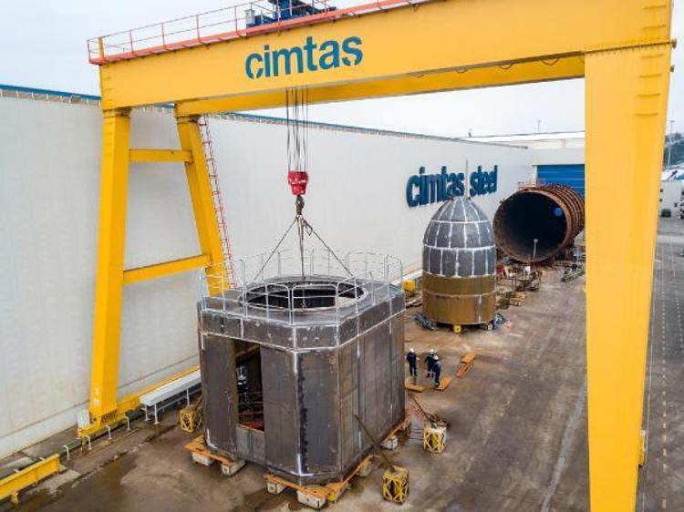 1915 Çanakkale Köprüsü Projesi'nin tüm kalıcı çelik imalatlarını yapan Çimtaş, kule üstü top mermisi figürlerinin imalatını da tamamladı.