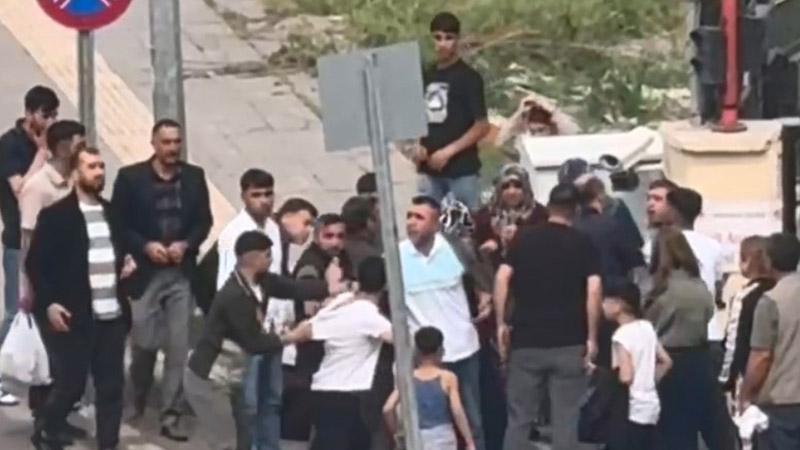 2 ailenin tekmeli yumruklu kavgası kamerada
