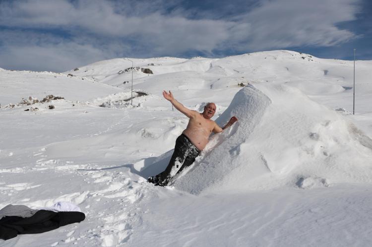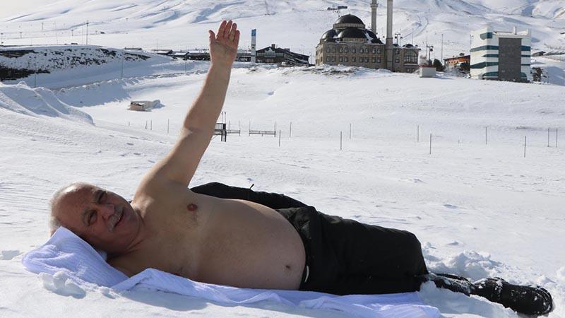 Herkesi buraya bekliyoruz. Bronzlaşmak isteyenler plaj havlularını serip bu keyfin tadını çıkarsınlar. 1984 yılından beri kar banyosu yapıyorum. Karla yıkandığım gün hastalanmıyorum. Ama kar banyosu yapmadığım diğer günler hastalanıyorum. Sağlık için önemli ama bunun bilinçli şekilde yapılması gerekiyor. Aksi halde hasta olursunuz. 2 bin rakımın üzerindeki alanlarda kar banyosu sağlık için çok önemli” dedi.