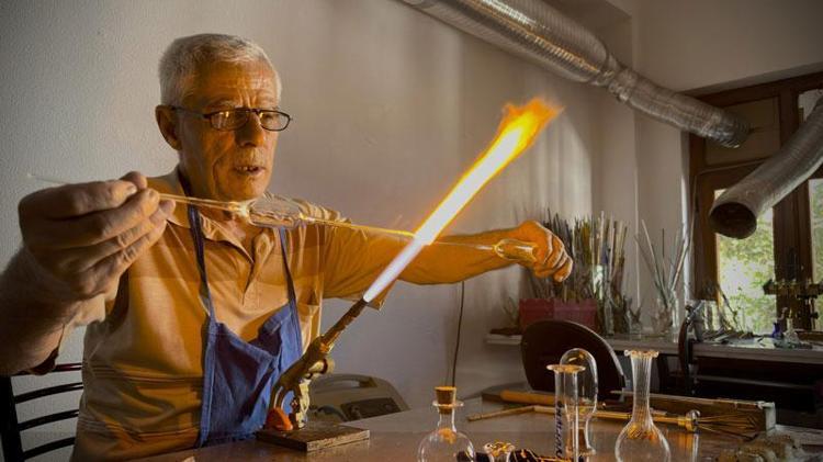Fatih Gölbaşı, fabrikadan gelen çeşitli kalınlıklarda, 1-1,5 metrelik boru halindeki camları işlediklerini ifade ederek, "Yapılacak objenin büyüklüğüne göre iki yönde bulunan 'sap' dediğimiz kısmı çekip, ocakta eriyen camı bazen çekerek, bazen üfleyerek bazen de birbirine yapıştırarak çalışıyoruz. Gözyaşı, parfüm, zehir şişeleri ve hediyelik eşyalar üzerine çalışıyorum. Yılda 1500'e yakın obje üretiyorum. Aynı zamanda teorik bilgisi olup da pratik bilgileri olmayan öğrencilere, bu mesleğin kaybolup gitmemesi amacıyla dersler veriyorum" ifadelerini kullandı.