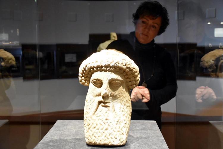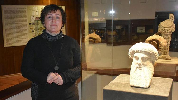 Uzun sakalı çizgi taramalarla belirginleştirilmiş olan heykelcikte figürün yüz hatları da görülebiliyor. Son figür ise mermer malzemeden heykel başı olarak dikkat çekiyor. 35 santimetre boyunda, burun kısmı kırık olan eserde figürün yüz detaylarının belirginliği göze çarpıyor.