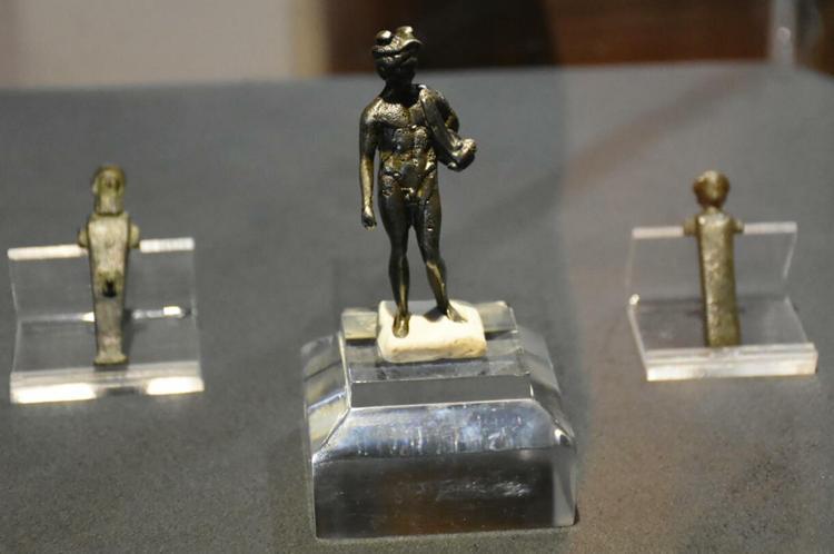 ‘Herme’ adlı heykelcik ise 5,4 santimetre boyunda ve bronz malzemeden yapılırken, figürün saçları, gözü, burnu ve ağız bölümünün ise basit detaylarla gösterildiği görülüyor. ‘Herme’ adlı bronz malzemeden yapılmış diğer heykelcik ise 6,1 santimetre boyu, ince dikdörtgen kaide üzerinde yukarı doğru genişleyen gövdesi ve omuz bölümünde iki çıkıntısıyla göze çarpıyor.