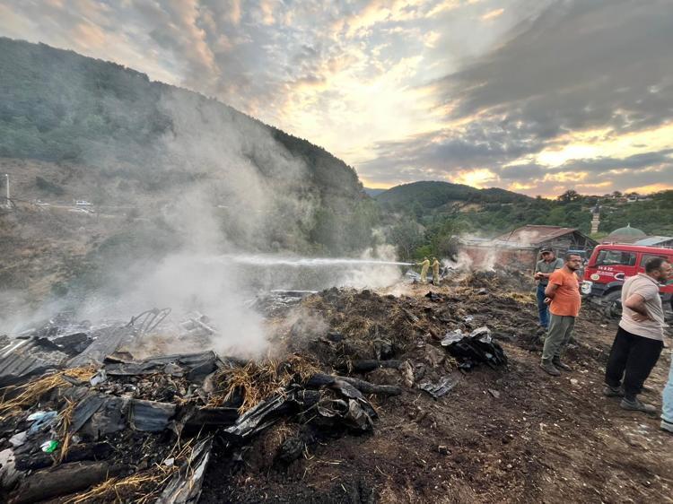 Bolu'nun Mudurnu ilçesine bağlı Çamyurdu köyünde gece saatlerinde 2 ev ile 10 samanlığın yandığı yangında hasarın boyutu, gün ağarınca ortaya çıktı.