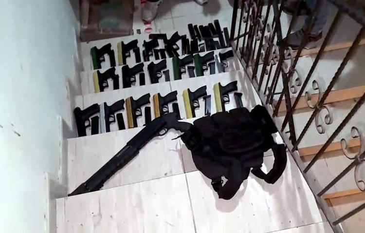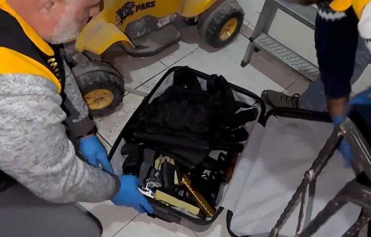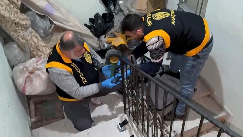 Adreste arama yapan polis, merdiven boşluğundaki eşyaların arasındaki valizin içinde 11 ruhsatsız tabanca, 34 şarjör, ruhsatsız av tüfeği, 19 tabanca parçası, çelik yelek ile 4 mermi ele geçirdi. Mehmet D. ile Şerif D. gözaltına alındı.