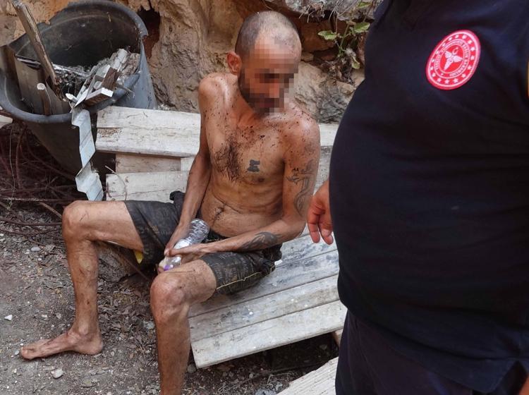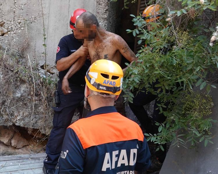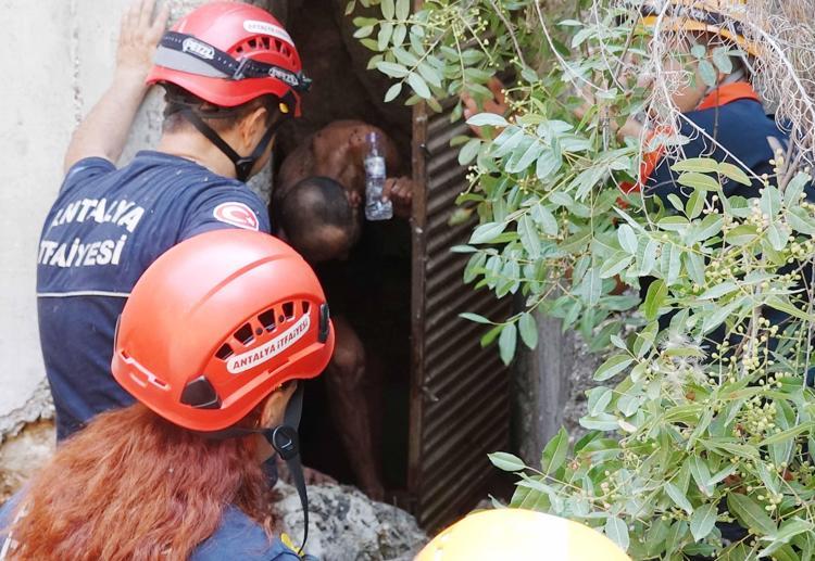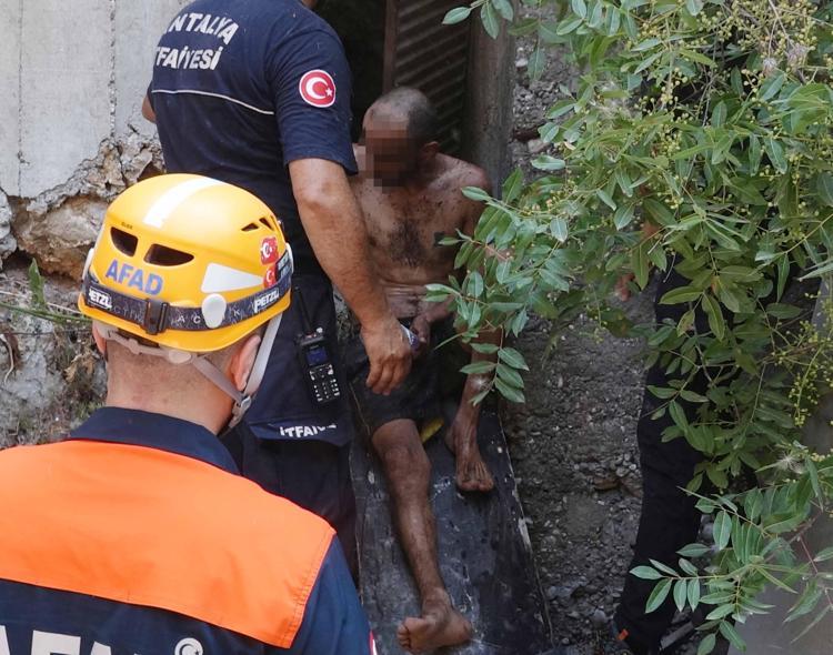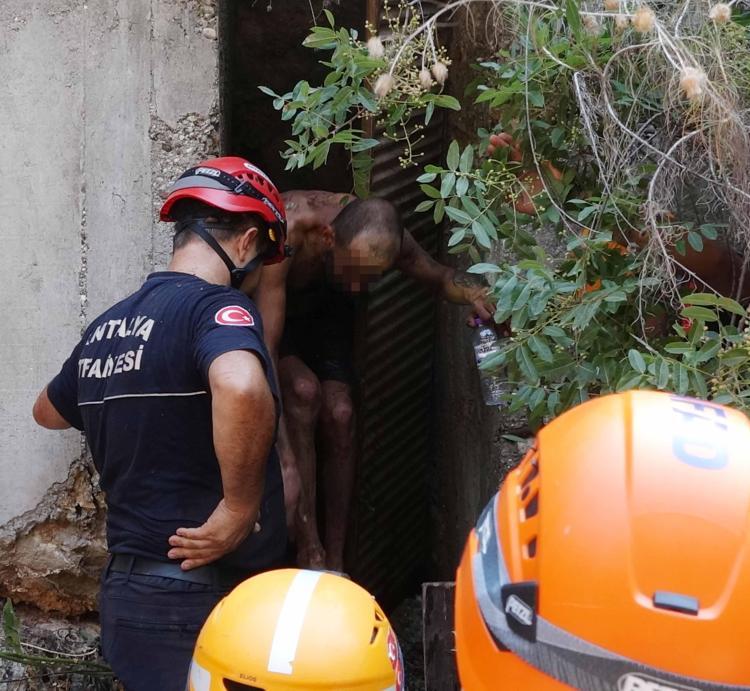 İsminin Mustafa Ş. olduğunu ifade eden kişi, ekiplerden su istedi. İtfaiye ve sağlık ekibinin tedavi isteğini kabul etmeyen Mustafa Ş., güçlükle ikna edilerek ambulansa alındı. Mustafa Ş.'nin vücudunda kırık izine rastlanmazken düşmeye bağlı çok sayıda çizik olduğu görüldü. Ekiplerin ilk müdahalesinin ardından Mustafa Ş., Antalya Eğitim ve Araştırma Hastanesi’ne kaldırıldı.