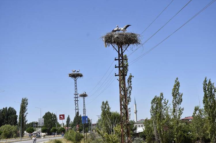 Sivas'ın Hafik ilçesinde leylekler, 20 yıldır Karavasar ailesinin yaşadığı müstakil evin hemen önündeki 3 elektrik direğine yuva yapıyor. Leylekleri artık kendilerinin bir parçası olarak gördüklerini söyleyen Nuriye Karavasar (55), "Onları baharda dört gözle bekliyoruz. Geldiklerinde seviniyoruz. Gittikleri zaman çok üzülüyoruz" dedi.