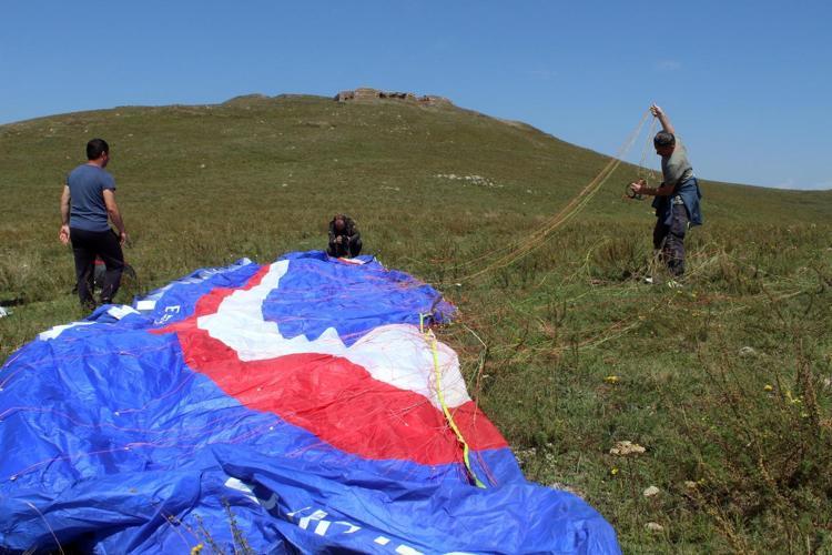 Yıldızlı Dağı'nın eteklerine başarılı iniş yapan paraşütçüler, Ardahan'ın, yamaç paraşütü için ideal yer olduğunu söyledi.