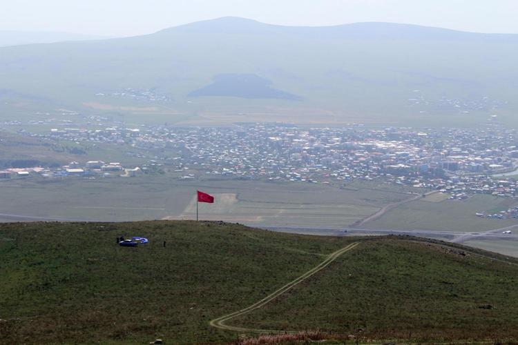 Ardahan Paraşüt Kulübü'nün 3 yamaç paraşütçüsünün tabyadan atlayışı, ilgiyle izlendi.
