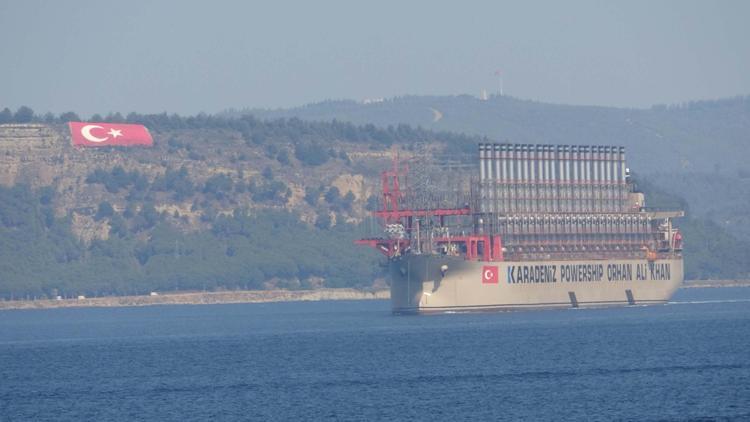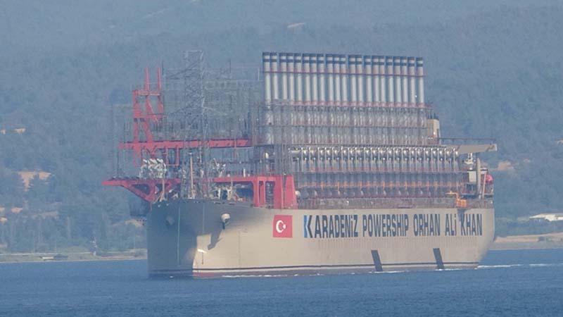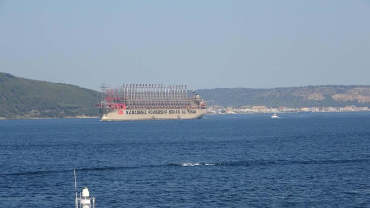 Çanakkale Boğazı'ndan geçen, 500 megavatlık elektrik üretim kapasitesine sahip, 289 metre uzunluğundaki 'Karadeniz Powership Orhan Ali Khan', Ege Denizi'ne doğru yol aldı.