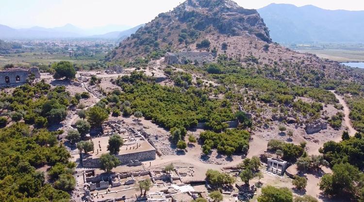 Antik kent ve kaya mezarları, Ortaca'nın Dalyan Mahallesi'nden de görülebiliyor. Antik kent, hüküm sürmüş uygarlıkların kalıntılarıyla dikkat çekiyor.