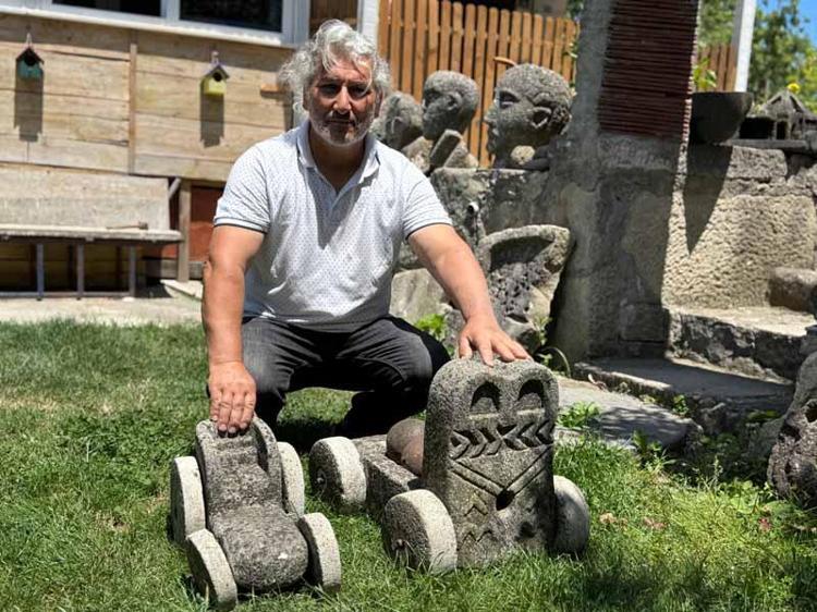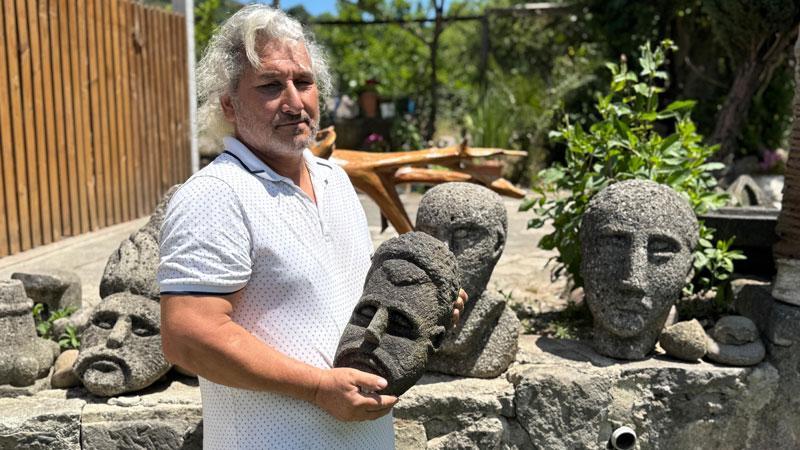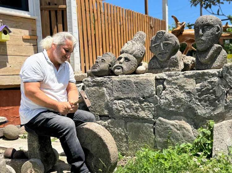Ordu’da taş oyma sanatı ile uğraşan Celal Kaya (56), 3-5 günde yaptığı heykellerin bazen tarihi eser sanıldığını belirterek, “Bu heykelleri evimin bahçesinde sergiliyorum ve görmek için insanlar buraya geliyor” dedi.