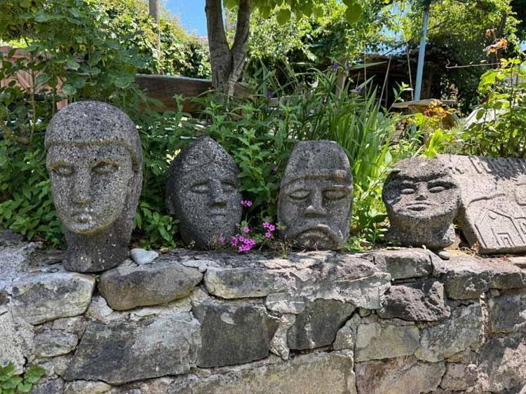 Şu an 30’a yakın eserim var ve bunları evimin bahçesinde sergiliyorum. Bir heykeli ortalama 3 ile 5 gün arasında yapıyorum. Heykelin boyutuna göre bu süre bazen 10-15 gün de olabiliyor. Heykel yapmak için kullandığım taşları, kendi bahçelerimden çıkarıyorum.