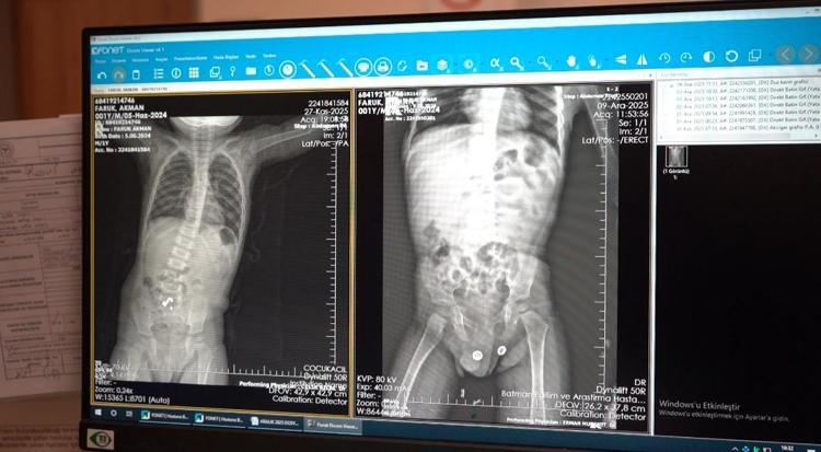 Batman’da mıknatıs yutan ve kusma, karın ağrısı şikayetiyle ailesi tarafından Batman Eğitim ve Araştırma Hastanesi Acil Servisi’ne getirilen Faruk Akman, ilk değerlendirme sonrası yakın takip amacıyla Çocuk Cerrahisi Kliniği’ne yatırıldı. Takipte mıknatısların sindirim sisteminde ilerlemediğinin görülmesi üzerine, çoklu mıknatısların bağırsak duvarlarına yapışarak delinmeye neden olabileceği belirtildi.
