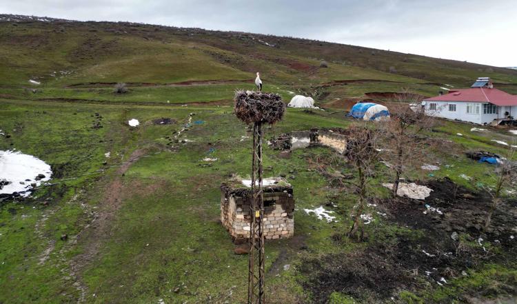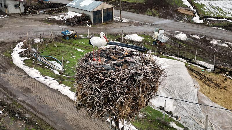 3 yıldır göç etmeyen leylek, aynı yuvada kışı geçiriyor