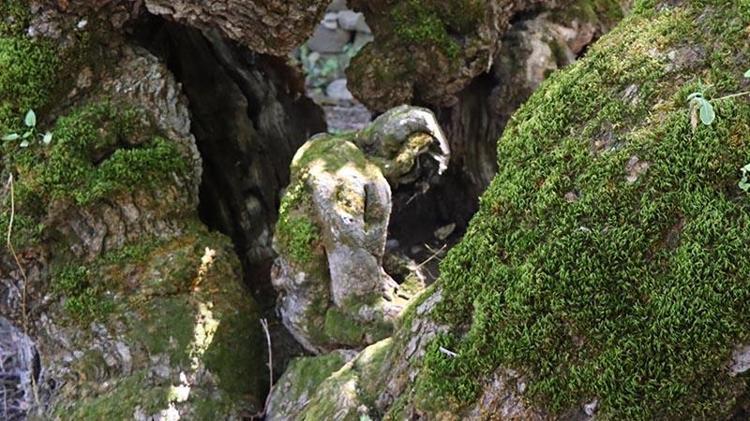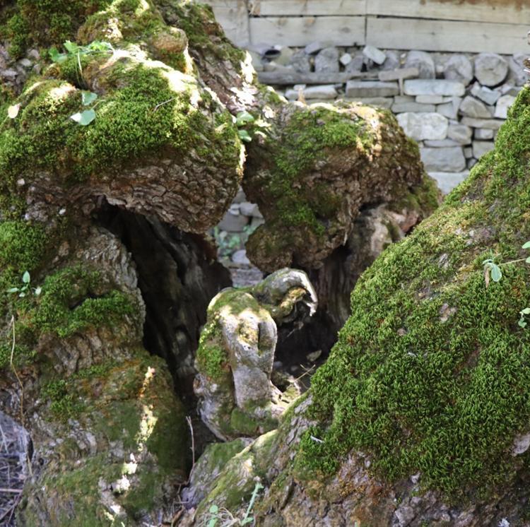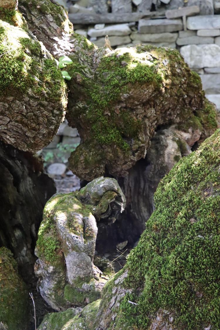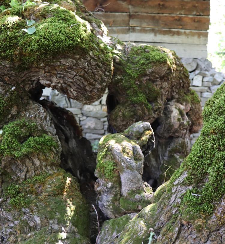 Erzurum’un Oltu ilçesinde yaklaşık 300 yıllık olduğu belirtilen devasa dut ağacının gövdesinde zamanla oluşan derin yarıklar, yere oturmuş ve başını eğmiş bir insan figürünü andırıyor.