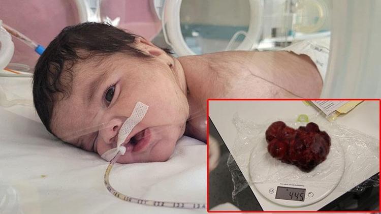 34 haftalık doğan Eymen bebeğin boynundan 445 gram tümör çıkarıldı