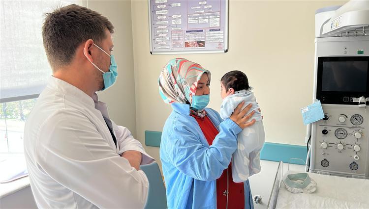 Kentte yaşayan Fatma Kara’nın hamileliğinin 32’nci haftasındaki doktor kontrolünde, bebeğinin boynunda nefes almasını engelleyen tümör olduğu tespit edildi. Kütahya Şehir Hastanesi’nde kadın doğum, çocuk cerrahisi, anestezi, yenidoğan ve kulak burun boğaz gibi farklı branşlardan uzman hekimler bir araya gelerek bebeği hayatta tutabilmek amacıyla operasyon planı hazırladı. Hamileliğin 34’üncü haftasında Kara, sezaryen ile erkek bebek dünyaya getirdi.