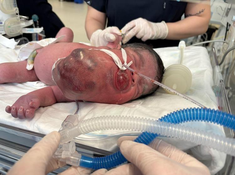 Yenidoğan Uzmanı Dr. Musa Turgut ise çok nadir görülen bir durum olduğunu belirterek, “Boynundaki ciddi bir solunum darlığı yapan bir süreçten şimdi bebeğimizi taburcu edebilecek bir düzeye gelebildiğimiz için çok memnunuz. Emeği geçen herkese tekrar tekrar teşekkür ederim” ifadelerini kullandı.