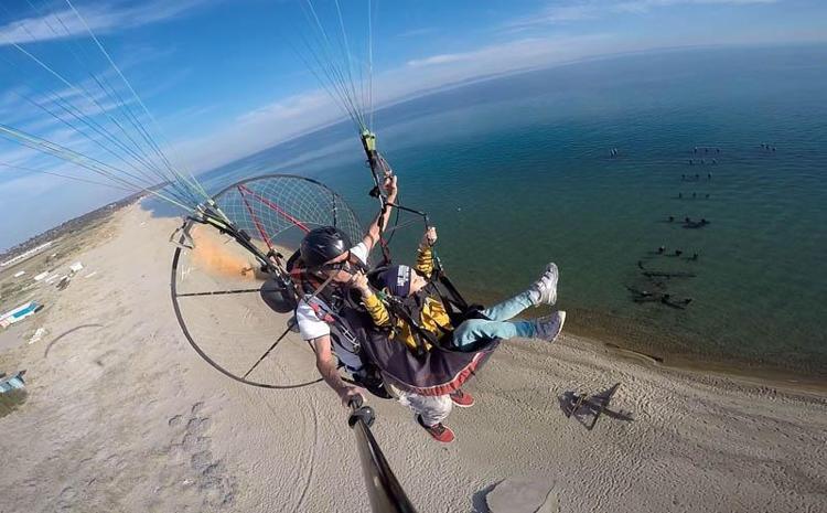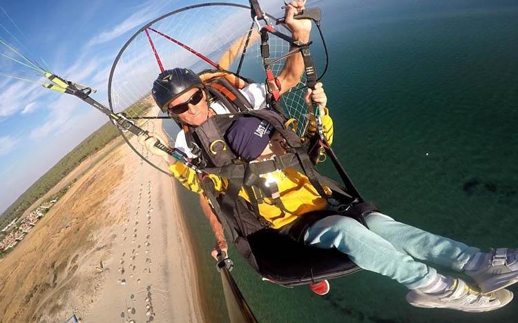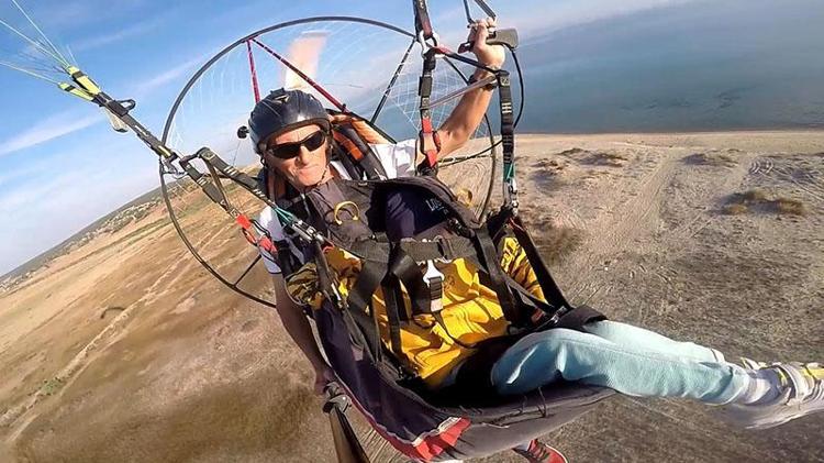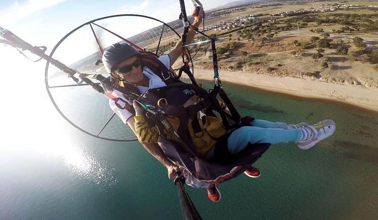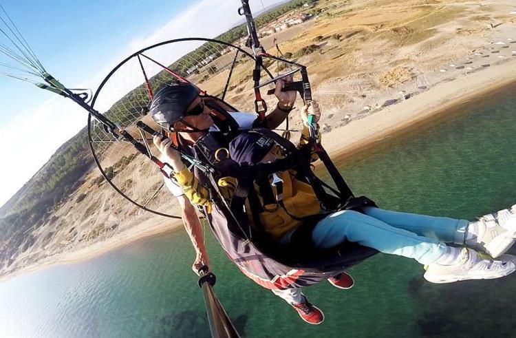 Hafta sonu tatili nedeniyle ailesiyle Edirne’den, Enez’e bağlı Karaincirli köyü sahiline gelen Eren Eryonar, paramotor pilotu Yılmaz Özkaya eşliğinde sahil şeridinde yaklaşık 150 metre yükseklikten uçuş gerçekleştirdi.