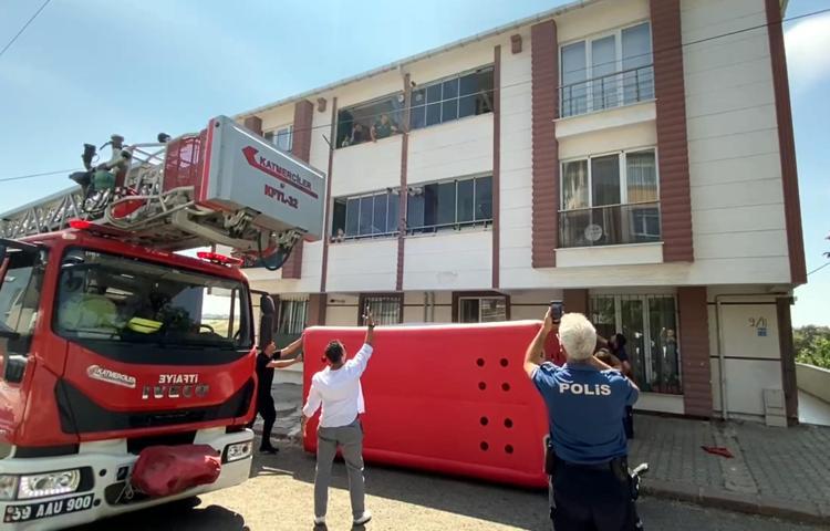 Olay, dün, Çorlu ilçesi Havuzlar Mahallesi Sarp Sokak'ta meydana geldi. Fabrikada işçi olarak çalışan Tolgahan T., evinde 2 çocuğunun annesi olan eşi Şirin T. ile tartıştı. Henüz belirlenemeyen nedenle çıkan tartışma sonrası Şirin T., K.A.T. adlkı bebeği evde bırakıp, annesinin yanına gitti. İddiaya göre; duruma sinirlenen Tolgahan T., kucağına aldığı bebeği 3 katlı binanın 3'üncü katındaki evinin penceresinden atmaya kalktı. Çevredekilerin ihbarıyla adrese polis, sağlık ve itfaiye ekipleri sevk edildi. Polis, kucağında bebeğiyle pencerede duran Tolgahan T.'yi ikna etmek için yoğun çaba harcadı. 1 saat süren ikna çabaları sonuç vermeyince, polis operasyon kararı aldı. İtfaiye ekipleri de bu sırada yere şişme yatak serdi.