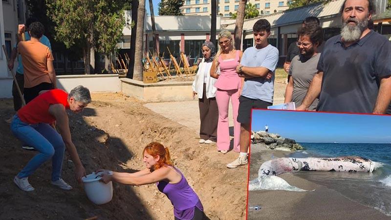 4 yıl önce gömülen balinanın iskeleti bilimsel kazıyla gün yüzüne çıkartılıyor