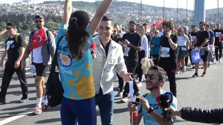 İmamoğlu startın ardından vatandaşlar ile boğaz köprüsünden geçti. Koşuya katılan vatandaşlar, ellerinde Türk bayraklarıyla köprüyü geçti. Kimileri köprü üstünde hatıra fotoğrafı çektirerek koşuya devam etti.