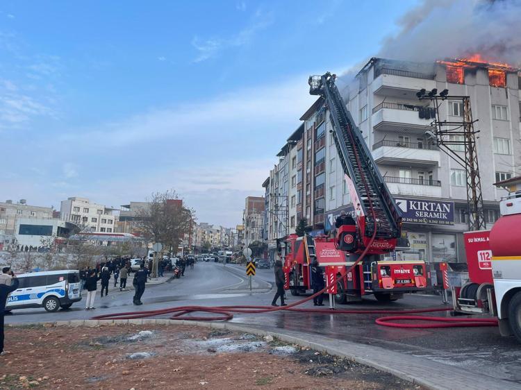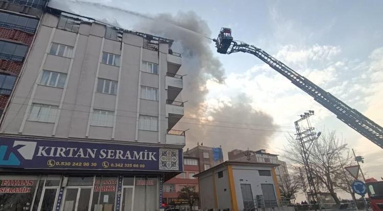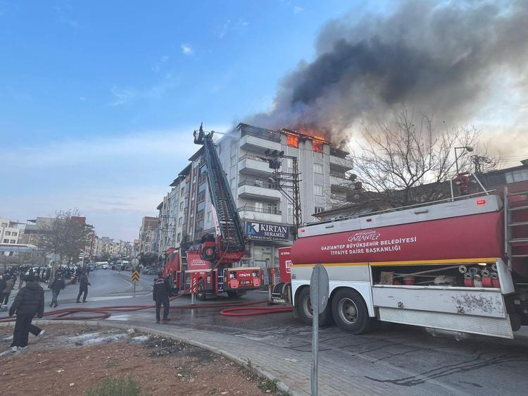 Gaziantep’te çıkan yangında 5 katlı binanın en üst katı kullanılamaz hale geldi.