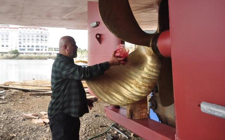 Geçen pazar günü mevlit okunup kurban kesilmesinin ardından tekneyi suya indirme çalışması başladı. Yağışlı ve rüzgarlı havanın çalışmaları zorlaştırması nedeniyle tekne yaklaşık 100 metrelik mesafeden 2 günde Manavgat ırmağına indirildi.
