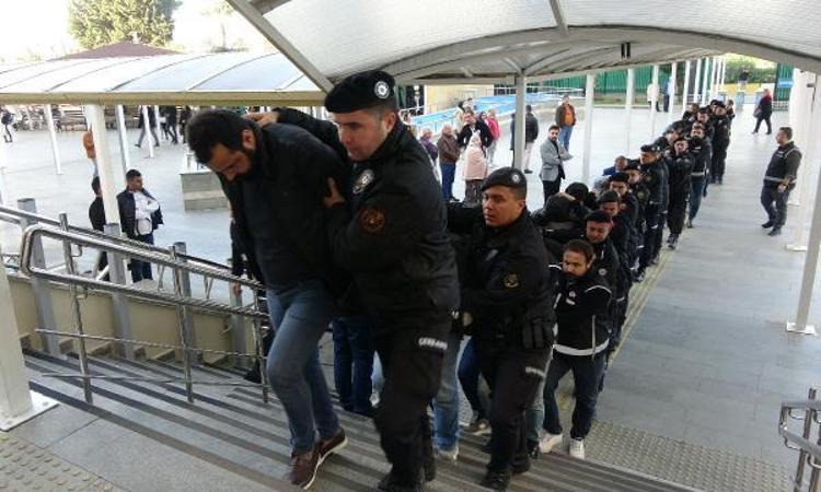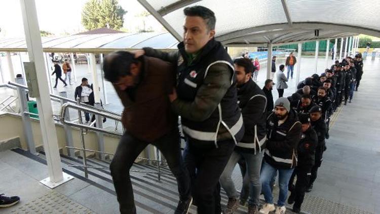 Antalya merkezli 10 ilde düzenlenen eş zamanlı operasyonda, 11 kişiyi 50 milyon 440 bin lira dolandırdığı suçlamasıyla gözaltına alınan 29 şüpheli, Nöbetçi Sulh Ceza Mahkemesi'nde hakim karşısına çıktı. İfadeleri alınan 29 şüpheliden 21’i tutuklandı, 8 şüpheli ise adli kontrol şartıyla serbest bırakıldı.