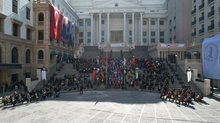Ankara Müzik ve Güzel Sanatlar Üniversitesi'nin (MGÜ) akademisyenleri ve öğrencileri ile MGÜ Müzik İlkokulu, MGÜ Müzik Ortaokulu ve MGÜ Güzel Sanatlar Lisesi'nin öğrencilerinden oluşan yaklaşık 500 kişilik koro, üniversitenin akademik yıl açılışında 'Can Filistin' şarkısını seslendirdi.