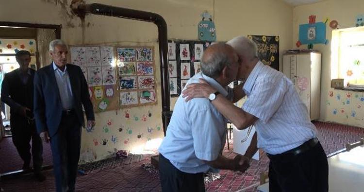 Bozkurt, burada hem köylüler ile hem de şimdi 60'lı yaşlarında olan 5 öğrencisi ile kucaklaşıp, duygu dolu anlar yaşadı.