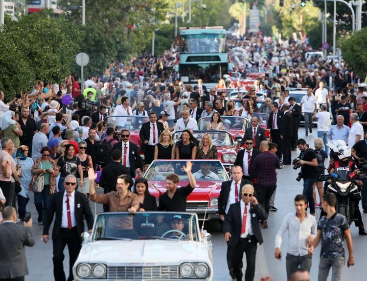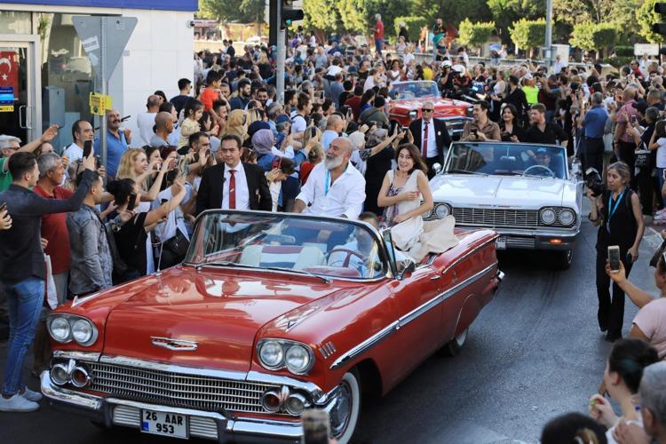 Antalya Altın Portakal Film Festivali'nin 56'ncısı, sanatçıların halkla buluştuğu geleneksel kortej geçişiyle başladı. Halkın ilgisinin yoğun olduğu kortej, 5 kilometrelik yolu 1,5 saatte tamamladı. 56'ncı Antalya Altın Portakal Film Festivali, kortejin ardından açılış töreniyle devam etti. 10 bin kişilik spor salonundaki törende ünlüler şıklık yarışına girdi. İlk kez bu kadar büyük salonda gerçekleştirilen açılış törenine halk da büyük ilgi gösterip salonu doldurdu. Ünlülerin yanı sıra törene Kültür ve Turizm Bakanı Mehmet Nuri Ersoy, Antalya Valisi Münir Karaloğlu, Büyükşehir Belediye Başkanı Muhittin Böcek, CHP Antalya milletvekilleri, belediye başkanları katıldı.