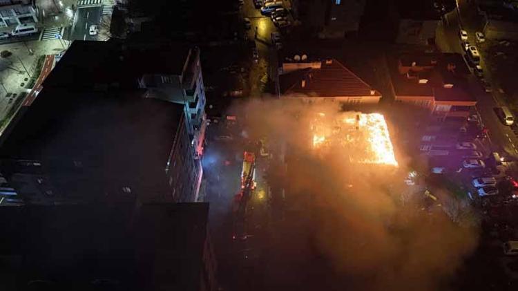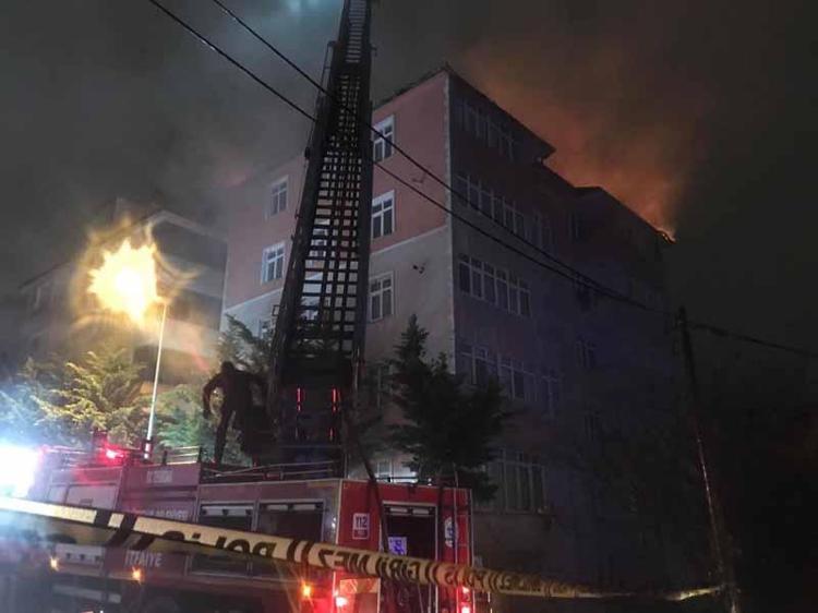 Çatıdaki yangın, itfaiyecilerin müdahalesiyle, binayı sarmadan kontrol altına alınıp söndürüldü.