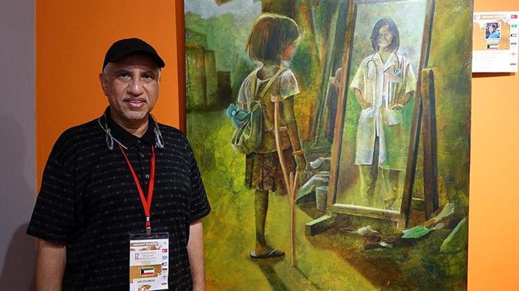 Sergiye Kuveyt’ten katılan Waleed Ameer, Gazze’de savaştaki çocukları düşünerek resim yaptığını belirterek, “Akçaabat Belediyesi tarafından düzenlenen bu çalıştaydaki grubun içerisinde olmakta mutluluk duyuyorum. Sanatçıların seviyesi çok yüksek bu yüzden çok mutlu oldum. Savaşlara dolu dünyamızda özellikle Gazze’deki savaşla ilgili resim yaptım. Bu savaşlarda kaybeden her zaman çocuklardır. Bacağını kaybetmiş bir kız çocuğu söz konusudur ve zorluklar içerisinden hayatını sürdürüyor. Aynada kendini doktor olarak görüp, doktor olmak istiyor. Kendi gibi insanlara yardım etmek istiyor” ifadelerini kullandı.