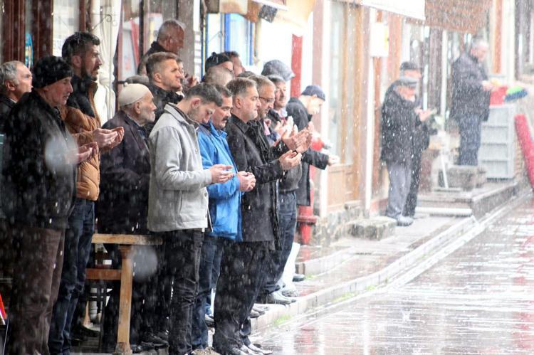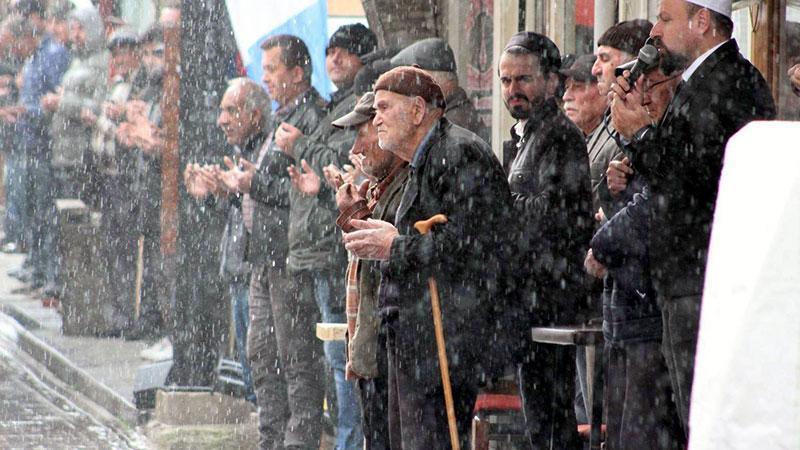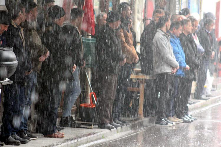 Esnaf duası bu hafta yağmur altında yapıldı. Duadan sonra bölge halkı, ilçedeki camilerde cuma namazı kıldı.