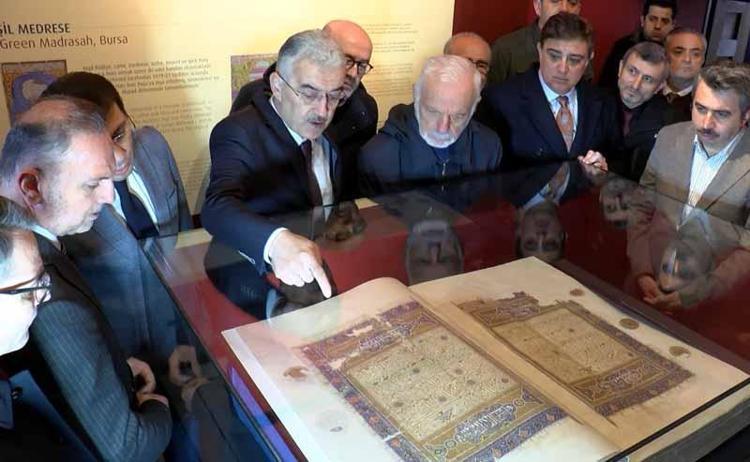 Özer, “Söz konusu Kur’an-ı Kerim yaklaşık 30 kilogram ağırlığındadır. 57,5’e 87 santimetre ölçülerinde ve 18 santimetre kalınlığında son derece büyük bir sanat eseridir. Aynı zamanda Türk-İslam ve Türk güzel sanatları açısından 4-5 ayrı sanat dalını içinde barındırmaktadır. Eserde çok özel bir hat sanatı, zengin tezhip süslemeleri ve altın yaldızlı bezemeler bulunmaktadır. Ayrıca kullanılan kağıt da son derece özeldir. Bu büyüklükte bir Kur’an-ı Kerim’in yazılabilmesi için özel olarak hazırlanmış kağıtlar kullanılmıştır. Dolayısıyla farklı sanatların bir araya geldiği, tam anlamıyla bir sanat şaheseridir. Dolayısıyla bugün sizlerin huzurunda, Türk ve İslam dünyasının yeniden ziyaretine açtığımız bu Kur’an-ı Kerim’in, Bursa’nın fethinin 700’üncü yılı vesilesiyle Bursa’mıza ve tüm İslam alemine hayırlı ve mübarek olmasını diliyorum” diye konuştu.