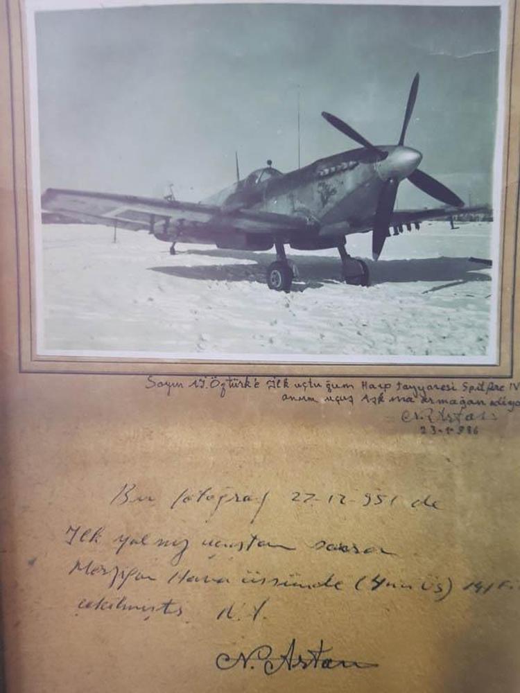 Başka bir uçakta temel uçuş eğitimi görmüş ancak Spitfire ile hiç uçmamış öğrencilere, hocalar yerde Spitfire'ı nasıl uçuracaklarını tarif ediyor sonra onları ilk uçuşa gönderiyorlardı. Necati Artan hocam tarifi olmayan o anı bizzat yaşayıp, sağ salim indikten sonra ilk iş olarak bana hediye ettiği fotoğrafı çekmişti. Üzerinde de kendi el yazısıyla bana hitaben 'İlk uçtuğum harp tayyaresi Spitfire anısına, onun uçuş aşkına armağan ediyorum' yazdı. Onun adına çok önemli bir anı, ölümsüzleştiren bir fotoğraftı ve aslını bana hediye etmişti. O zaman 22 yaşındaydım. Böylesine büyük bir iltifat ve belki de sonraki yıllarda uçuş hayatımın tamamında içimdeki azim, ısrar ve asla vazgeçmeme arzuları, o fotoğrafın nezdinde bana aşılanmış oldu" dedi.