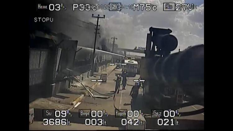 Yangına müdahale edilen, İl Emniyet Müdürlüğü bünyesindeki 21 TOMA’dan hem söndürme ve hem de soğutma çalışmalarında toplam 550 ton su ve 900 litre köpük kullanıldı.