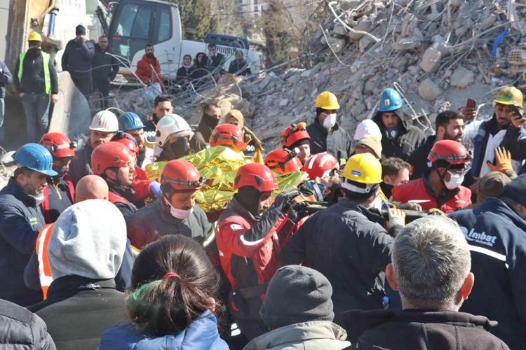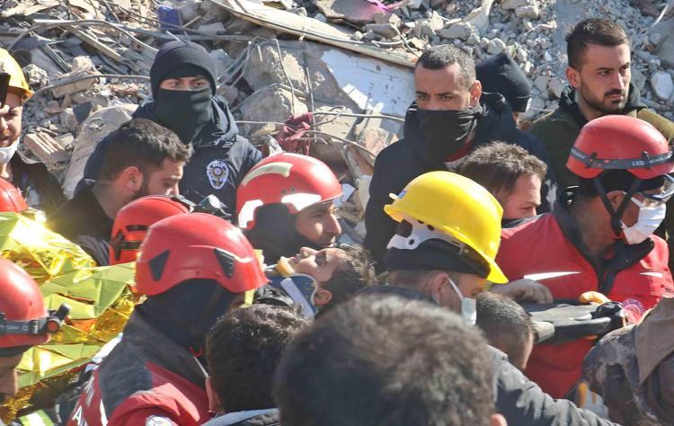 Cumhuriyet Mahallesi Narlıkuyu Sitesi'ndeki 8 katlı A Blok'ta arama-kurtarma çalışması yapan AFAD, TTK ve UMKE ekiplerinin, "Beni duyan var mı? Beni duyuyorsan; 3 kere yere vur" şeklindeki seslenişe, enkazdan karşılık geldi.