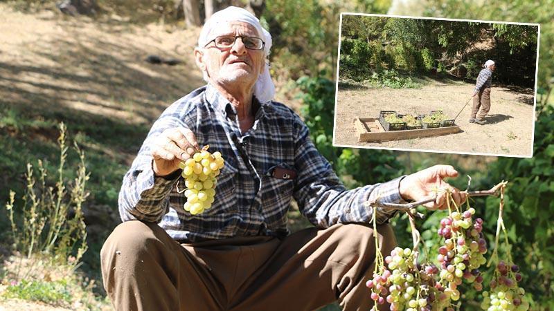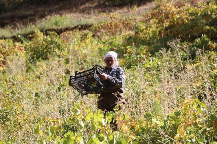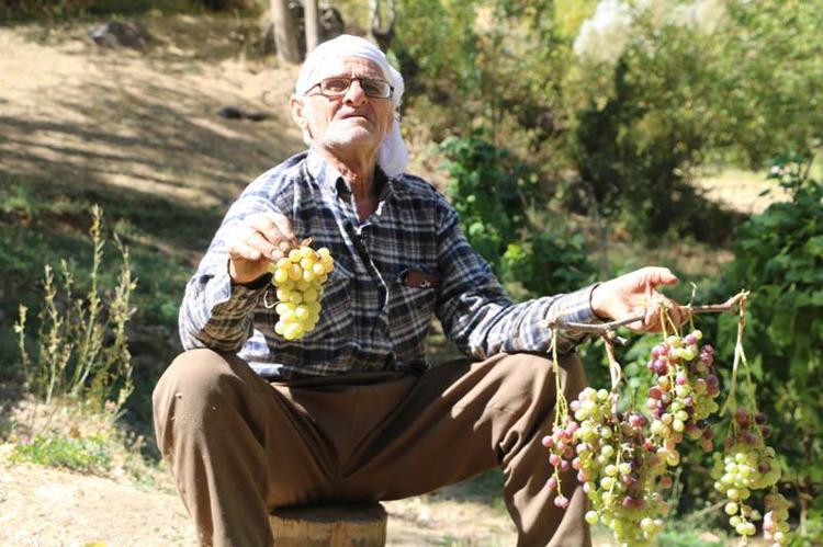 Üzüm bağlarım dağda olduğu için toplanması indirmesi biraz zor oluyor. Sabah erken saatlerinde kasalarımı alıp bağa çıkıyorum gün boyunca hasat ettiğim üzümleri kasalara dolduruyorum. Bir sonraki gün ise sırtıma kızak alıp 3 kilometre yokuş çıkıyorum. Topladığım üzüm kasalarını yükleyip çekiyorum. Hem zevkli hem de zahmetli bir iş. Benim 12 çocuğum var ve 11 çocuğumu üzüm satarak okuttum" diye konuştu.