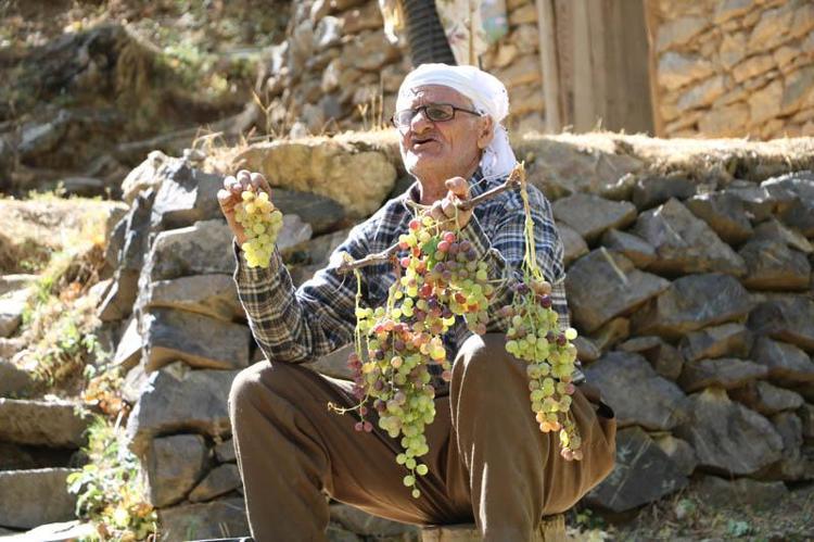 Şemdinli ilçesi Altınsu köyünde yaşayan 12 çocuk babası Süso Çakar, 65 yıldır geçimini üzüm üretimiyle sağlıyor. Kendisine ait dağlık arazilerde kurulu üzüm bağlarında tek başına çalışan Çakar, sabahın erken saatlerinde bahçesine gidip gün boyu üzüm topluyor.